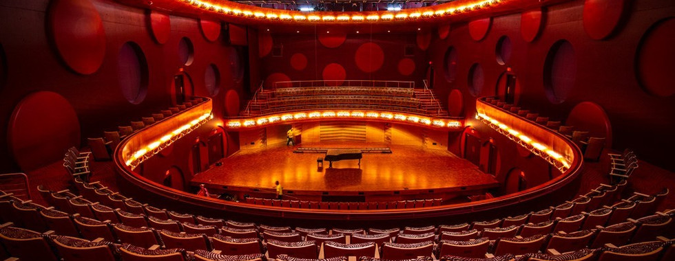 Las paredes interiores de la sala de conciertos están revestidas con un sistema de cofre acústico, una serie de círculos estratégicamente colocados y colocados. Además de proporcionar un tratamiento de sonido superior, el sistema combina maravillosamente con el resto de la estética de la sala. Las áreas ocultas de la cámara de reverberación, donde el sonido realmente pasa, flanquean el escenario. Ahora parte de una nueva puerta de enlace que une a la Universidad con la comunidad, el Centro de Música Hamel ofrece un programa de actuaciones muy ocupado, con casi el doble de eventos que sus instalaciones predecesoras.